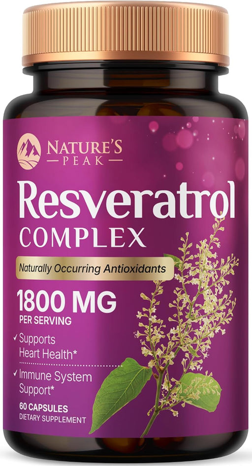 View full details100% Natural Resveratrol 1800mg - 3X Strength Trans-Resveratrol Pills for Heart Health, Best Resveratrol Supplements, Potent Polyphenols Antioxidant Complex, Non-GMO, Bottled in USA - 60 Capsules