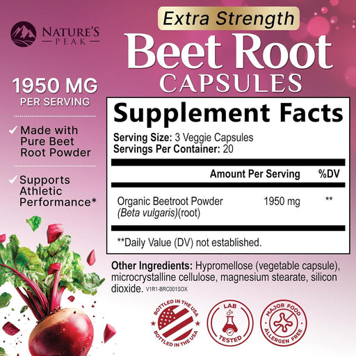 Nature's PeakBEET ROOT CAPSULES 1950MG PER SERVING: Natural, extra strength beet root powder formula supports endurance, stamina, and daily performance HEART H...