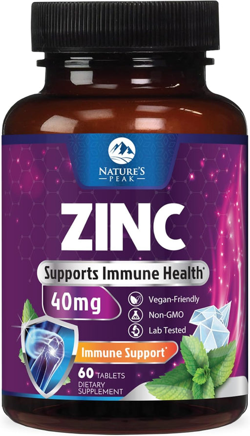 Nature's PeakZINC IMMUNE SUPPORT SUPPLEMENT: Each tablet delivers 40mg of zinc for immune health support; A top choice for zinc supplements for men and women, ...