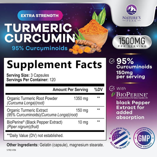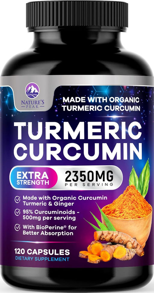 Nature's PeakPowerful Turmeric Curcumin Supplement: Each serving delivers 2350mg of turmeric and organic ginger, along with 95% standardized curcuminoids, maki...