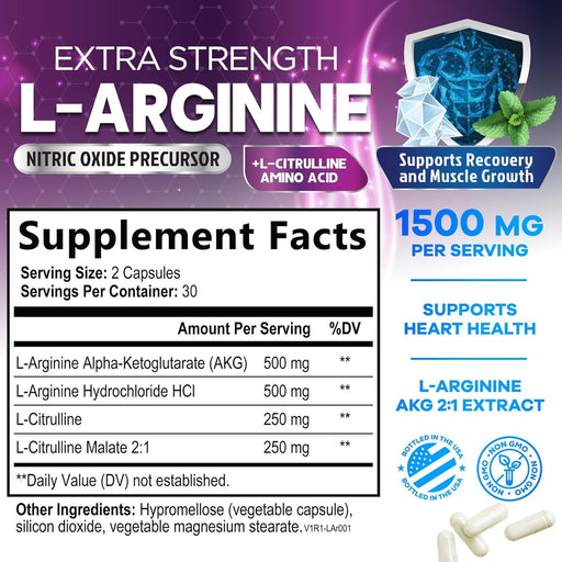 Nature's PeakExtra Strength & Max Formula: 1,000mg of L-Arginine & 500mg L-Citrulline per capsule, promoting nitric oxide production to support heart h...