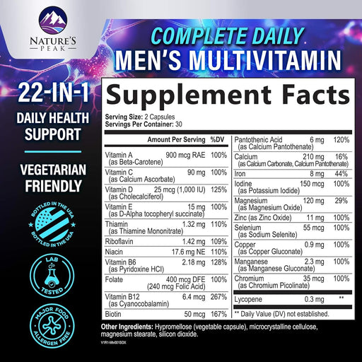 Nature's PeakCOMPLETE MULTIVITAMIN FOR MEN: Daily wellness support with essential nutrients for energy, health, and performance. POWERFUL ALL-IN-ONE FORMULA: I...