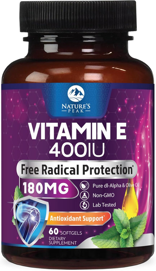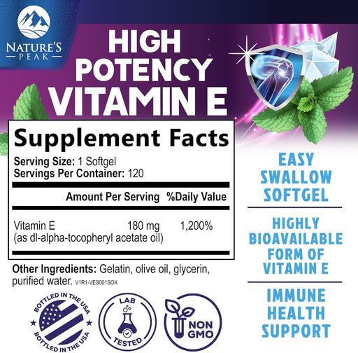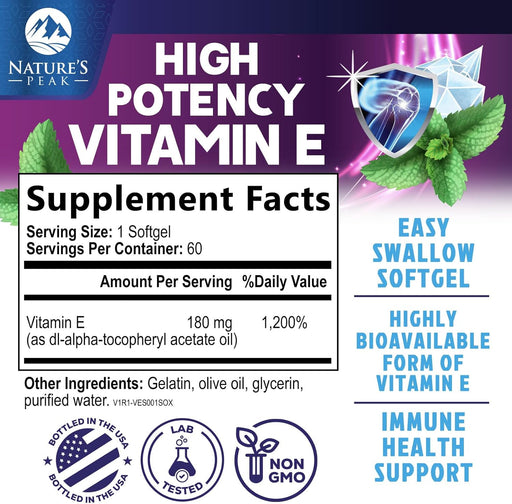 Nature's PeakPotent & Power: Our powerful vitamin e supplement packs 180 mg (400 IU) of vitamin e for overall health; Ideal as e vitamins daily support for...