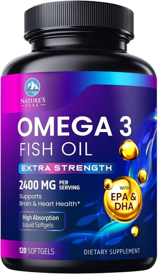View full detailsTriple Strength Omega 3 Fish Oil 2400 mg Softgels, Nature's Fish Oil Supplements, Brain & Heart Health Support - EPA & DHA, 1200 MG Fish Oil in Each Softgel, Omega-3 Supplement Softgels - 120 Count